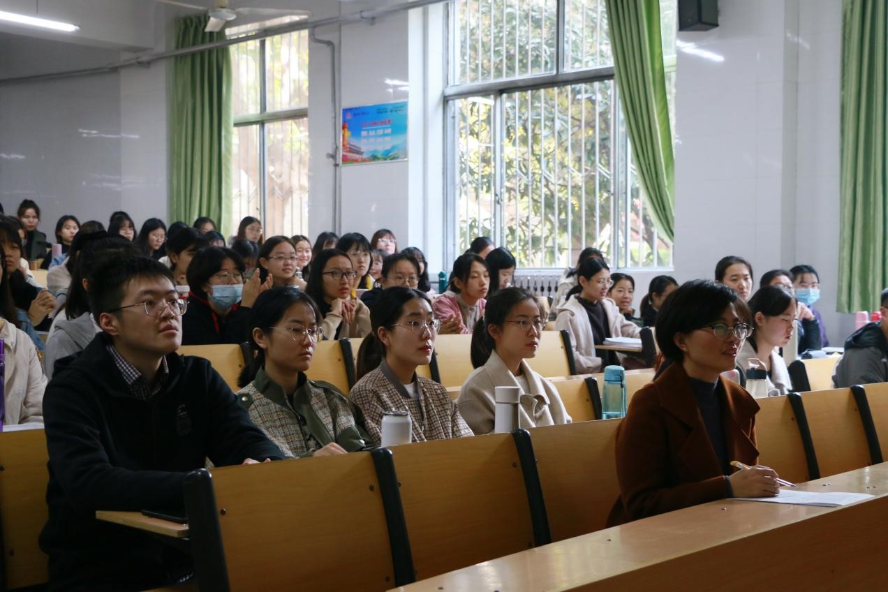 首先由李杰老师围绕中学生物学教学理念、学科德育、班级管理技巧等三个方面作出讲解 。李老师以生动质朴的语言,从具体的生物学教学、生物学科德育、校园安全三个情景入手,结合初高中的实际情况和具体案例,重点向同学们讲述了中学生物教师各项教学实践工作的有效方法。随后赵莹莹老师以“有温度的管理”为题,分别对“管理”和“教育”两个词进行了定义和解释,并向同学们提出了“适度惩戒”和“弹性惩戒”两种管理方法,使同学们深刻感受到“有效管理”、“因材施教”的重要性。