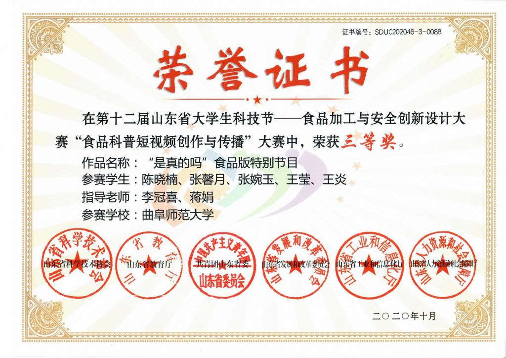 9月26日-27日,第十二届山东省大学生科技节一一食品加工与安全创新设计大赛圆满落下帷幕。本次大赛共吸引来自33所高校的186个项目参赛,经过初赛、视频答辩、网络投票等环节,炸金花