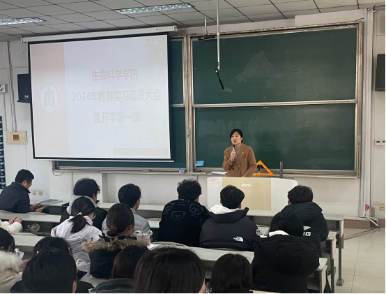 教学论教研室主任郭永峰细致具体地讲解了实习过程中应当注意的问题,为同学们提出了实习建议与指导,并强调在教学过程中要善于观察,努力发现教学中的问题,把握教学的重点与难点,创新性地将生物核心素养融入教学设计当中。