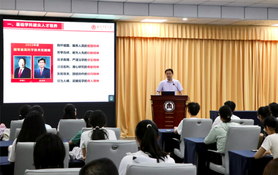 为加强生物科学拔尖创新型人才培养,涵养新时代青年学子科学家精神,6月26日下午,党委副书记、校长张洪海教授以“弘扬科学家精神,培养基础学科拔尖创新人才”为主题,在科技楼弘道厅为我院2023级卓越班讲授思想政治理论课。