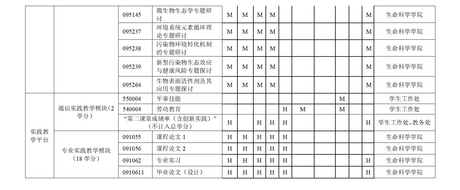 生态学专业培养方案