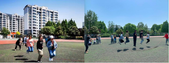 在整场比赛中,最精彩的项目当属气球爆爆爆,这个项目是个人与集体的融合,参与队员需要去踩破敌队的气球,同时要保护自己的气球,也要照顾到队友。随着比赛的进行,队员们不断转变策略,有的主动出击,有的坐山观虎斗,有的单打独斗,有的群起而攻,总之每队队员都用自己的方式保护自己的气球,争取最终的胜利。三人四足比赛中,队员们或相互搂着腰,或手挽着手,大声喊着“一二、一二”的口号,,你追我赶,奋力冲刺。有的队伍步调一致,一马当先。导师们也积极参与到各个项目中,与学生一起感受运动的快乐,操场上洋溢着师生欢快的笑声。
