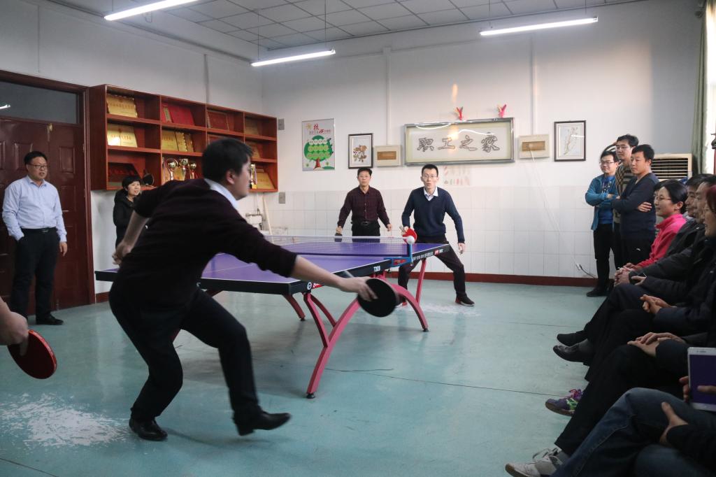 趣味乒乓球赛首先将到场的二十几名运动员分为了红蓝两队,以男双、女双、混双、男单等形式进行了七场团体赛。其后,还举行了挑战赛、条件限制赛等各种形式的趣味比赛。运动员们在场上尽情地展示自己的球技,场下的党员同志们给运动员不时的加油鼓励,支部党员的心通过小小的乒乓球连在了一起。