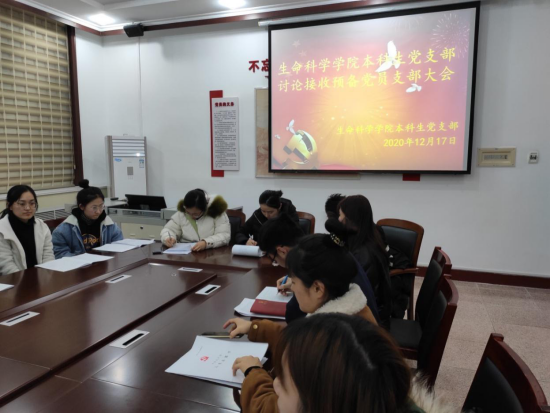 2020年12月17日下午,本科生党支部在生物楼208室召开全体党员支部大会,此次会议由党支部书记刘文静主持。