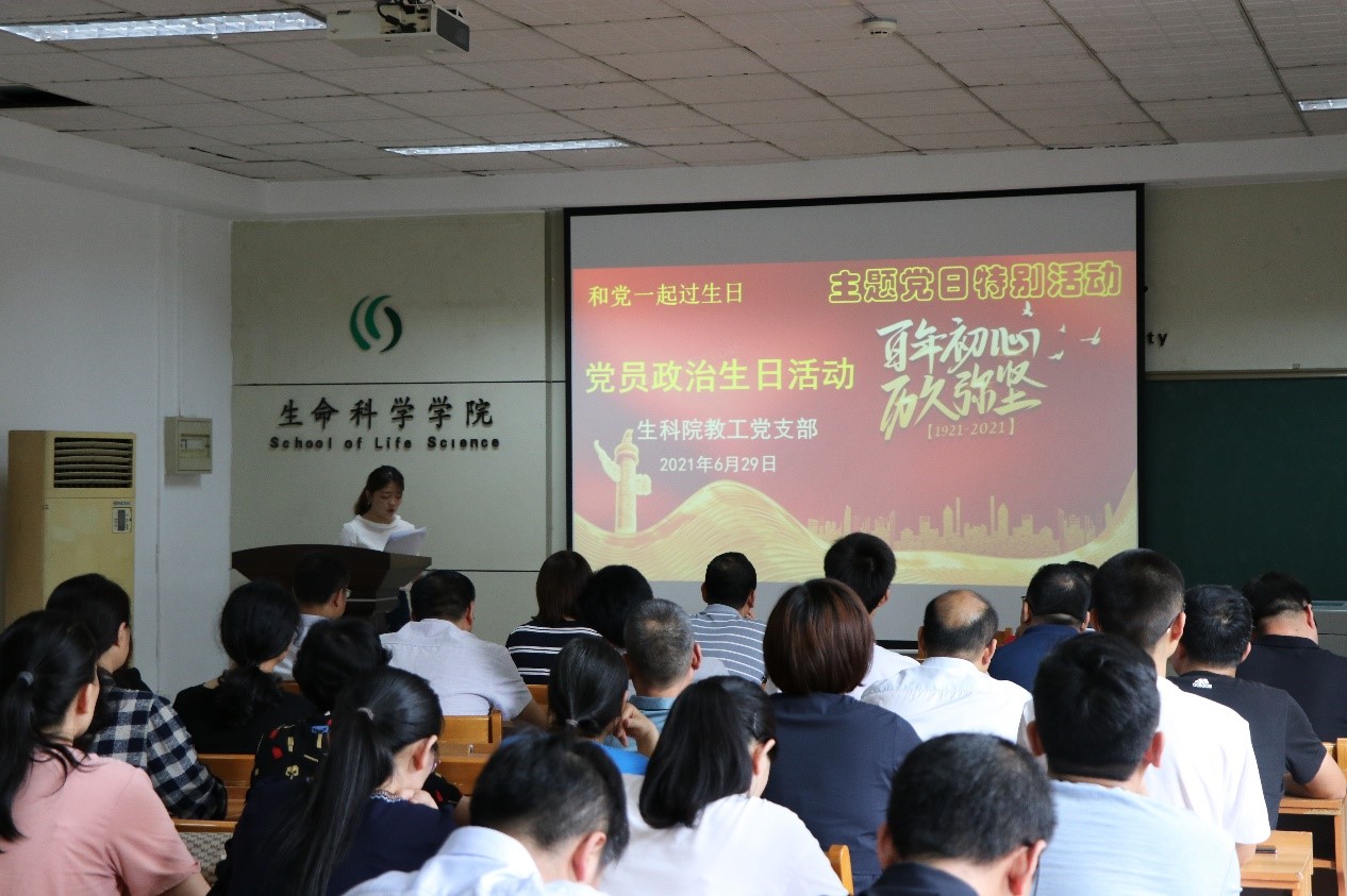 建设的强大力量,6月29日下午,生科院教工党支部举办了“党员政治生日”主题党日活动,本支部63名党员“和党一起过生日”。