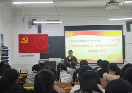 本科生第一、二、三党支部于生物楼229室联合开展“红色党魂铸团结,多彩民族共奋进”主题党日活动。本次活动由本科生第一党支部书记杨申振同志主持。