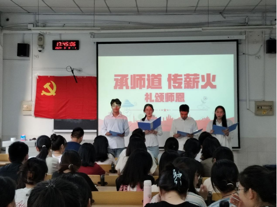 接下来,由陈春婷、付媛媛、刘岩硕三名党员代表分别发表支教过程中的心得感悟。他们表示,支教生活是一段艰辛而快乐的旅程,更是一段难忘的成长经历,而作为一名青年党员,应当继续发扬党的优良传统,发挥党员先锋模范作用,努力为国家的教育事业添砖加瓦。随后,由四名党员同志带来了深情的朗诵——《你从哪里来》,以表达对教师的感激之情,一句句深情的话语,仿佛让大家看到了教师们辛勤耕耘的身影,现场响起了阵阵热烈的掌声。