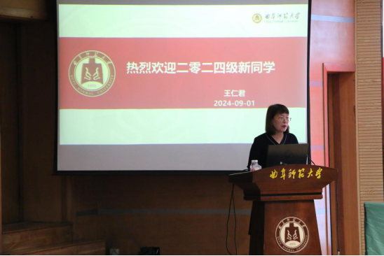 教师代表、博士生导师、二级教授、教育部新世纪优秀人才、山东省有突出贡献的中青年专家、校级师德标兵、校级十佳研究生导师包颖教授为新生送上祝福,并鼓励同学们要肩负责任、勇于担当,放开束缚、敢想敢为,快乐学习、愉悦生活。