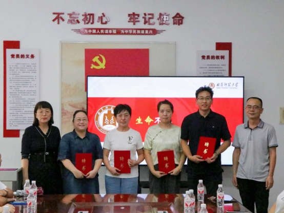 李志广、王仁君为家委会主任、副主任、秘书长颁发聘书并合影留念。受聘仪式后,新当选的家委会主任胡超群作了发言,感谢炸金花