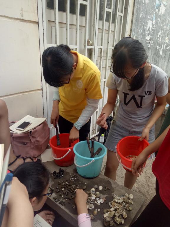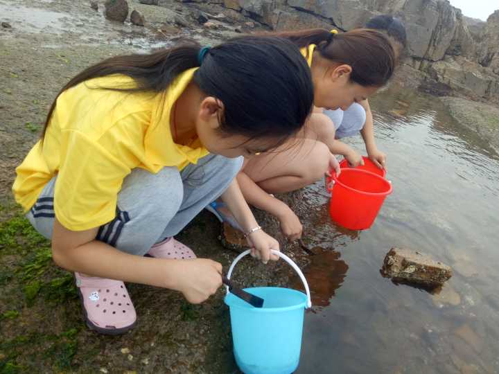 在这一个周的标本采集中,每位同学跟随老师下海,在烈日下在退潮后光裸的沙滩上踩着岩石,一步一个脚印的搜寻着自己不认识的物种,再将它们带回并询问老师。海边这些看似相同的贝壳竟有如此多不同的种类,壳子上的凹陷和纵勒都显示着它们物种的独特性,十分奇妙。除此之外,中国科炸金花