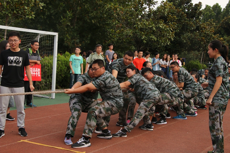 为了丰富学生的军训生活,培养新生们团队精神和集体荣誉感,我校于9月24日在西操场举行了新一场振奋人心的拔河比赛。