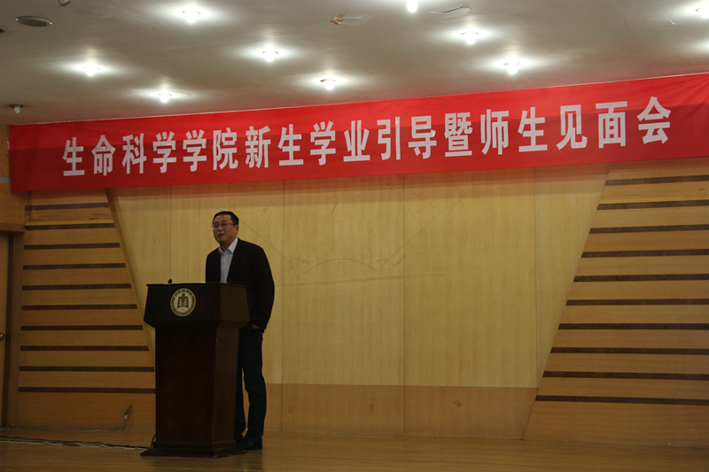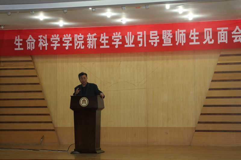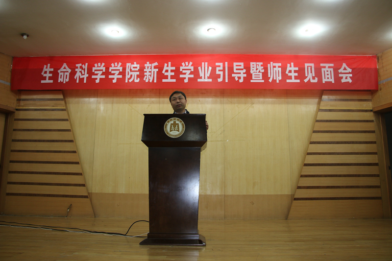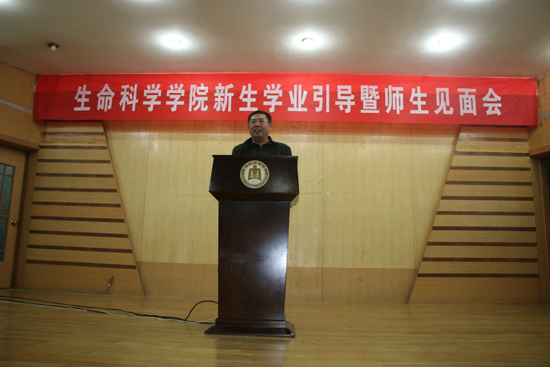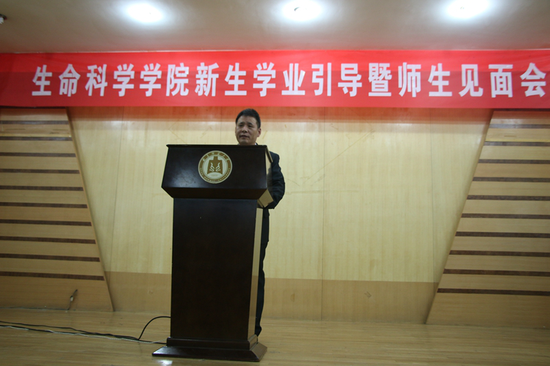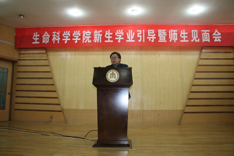 2017级新生辅导员赵强副书记主持。张洪海校长首先代表学校对同学们选择曲师大,选择生科院表示诚挚的欢迎,对大家能够考上曲师大,考进生科院表示热烈的祝贺。随后张校长以生物专家的视角,循序渐进的从生命科学的前沿进展、人类面临的许多全球性的难题、保护及修复生态环境、学科体系等多方位引导学生,培养探索生命科学的兴趣和热情。张校长以自己的求学经历,以优秀毕业生的奋斗历程,以生命科学巨匠们的成就,鼓励和激励学生们。在大学这个新起点上,张校长提出三点希望和建议:1.传承曲园优良的学风,把学习作为大学生活的中心 2.持续保持专业兴趣和对生命探索的热情勤奋笃学 3.志存高远。最后张校长衷心祝福同学们用最美的年华在最美的曲园成就最美的自己!