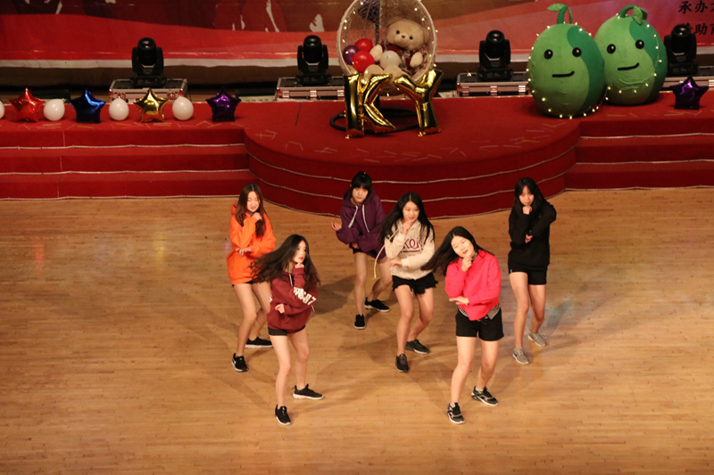 啦啦操队带来热情似火的开场舞《play with fire》,拉开晚会序幕。歌曲《斑马斑马》、《三年二班》展示了炸金花