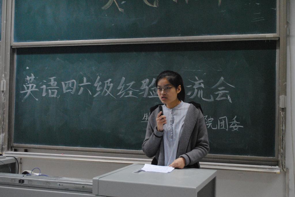 团委学生会举办的 “四清六活,英飞流年”的英语四六级经验交流会于11月12日晚上在综合楼106教室举行。诚邀2015级通过英语四、六级考试且经验丰富的李倩、郭娜、孙美与对英语四、六级考试有疑问的同学们分享经验。