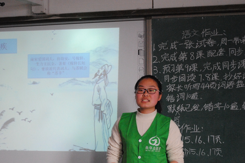 本次活动以上周面试选拔出的志愿者为主要力量,前往小学进行以讲古代文学诗词为主的支教活动。经过面试选拔的各位志愿者在活动中热情高涨,都表现出自己对于古诗词的独到见解,同时挑选出部分优秀古典文化讲解给孩子们。古代大文豪的诗句在课堂上响起,小学生们都保持着很高的参与度,对新老师和新学法兴趣盎然。将这些优秀的诗词传统文化教给孩子们,让他们了解到当时的民生苦乐,体验世间悲欢。这不仅对孩子们有所裨益,更是升华了支教志愿者的精神灵魂。