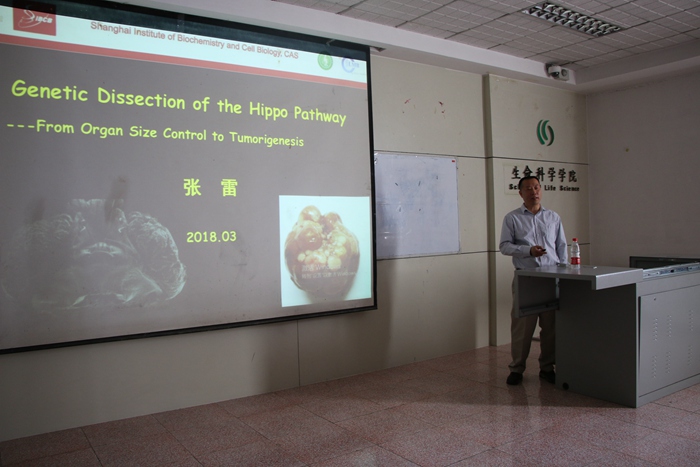 生物化学与细胞生物学研究所博士生导师季红斌研究员和张雷研究员应邀做客我校“生命科学前沿讲坛”,分别作了题为“Lung adenosquamous carcinoma metastasis and drug resistance”和“Genetic Dissection of the Hippo Pathway—From Organ Size Control to Tumorigenesis”的学术报告。报告会有炸金花