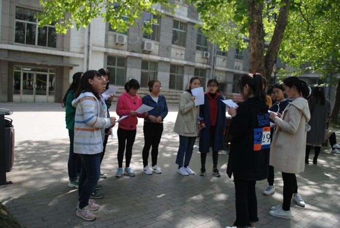 比赛将分为三批次进行,共十八支小队。前六队先进行寻宝,要求每队两名成员不能分开,在指定位置开始比赛。前六队全部完成后进行后六组的比赛。活动伊始,每组参赛选手人手一份提示信息,尽力寻找分布于校园中的六棵树,浏览植物信息并获得小礼物,全部找到后返回起始地点。比赛过程同学们状况百出,令人忍俊不禁。然而选手们勇于克服困难,你追我赶的寻找宝贝,最后回到生物楼后花园。同学们的知识竞答环节将气氛推向高潮,对植物的了解充分展现了生科学子风采。活动结束后,选手们对锻炼的认识更加深刻,更加想要放下手机,做蓝天下的好少年。