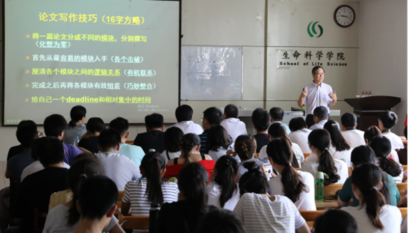 上午,卢宝荣教授从科学论文的形式与内涵;题目、作者署名及地址的撰写;论文摘要的撰写;前言的撰写;材料和方法的撰写;结果的撰写;以及讨论的撰写等8个不同的层面,对科学论文写作的基本原则和理念、基本格式、技巧和重要内容的撰写方法,进行详细的讲解。
