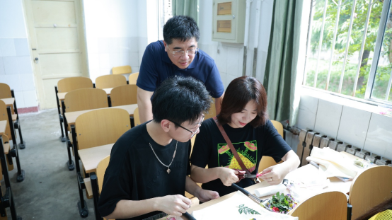 在“植物拓印”活动中,同学们俯身挑选叶片、细心摆放、轻轻敲拓,把自然的脉络永久留存在帆布上,这亦是独属于生科学子的专业见面礼。