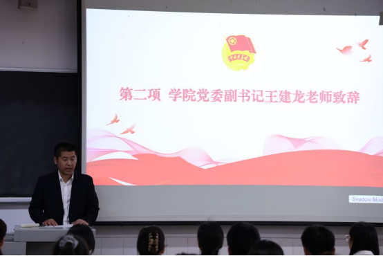 党委副书记王建龙为开班仪式致辞。他指出,学生骨干发挥着沟通桥梁、榜样示范、组织凝聚的作用,青马学员作为学生骨干的典型代表,要用一言一行加强自身建设,争做学习榜样,塑造“青马工程”学员的优良形象。希望全体学员以本次培训为起点,全方位提升政治素养和实践水平,做到学有所思、学有所获、学有所成。