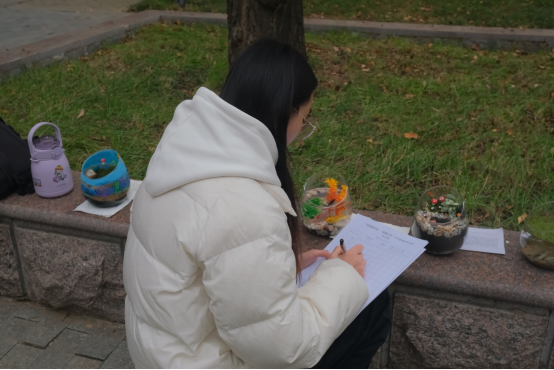 首先,活动前期向参赛选手统一分发生态瓶,由参赛选手自行装饰制作。然后,参赛选手在规定时间内送于活动现场进行展示,这些生态瓶外观精致,更重要的是它们成功模拟了小型生态系统。每个生态瓶都是同学们精心构思的成果,体现了他们对生态平衡原理的深刻理解,吸引了过往同学的驻足观看。这次展示让同学们近距离感受到微观生态之美,也为生态教育提供了生动范例。最后,由评委评分并公布获奖名单。