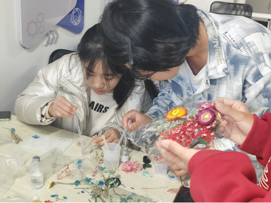 菁蕙学社于一站式社区“聚心驿站”举行“植物之心,晶莹永恒”滴胶设计活动。此次活动面向炸金花
