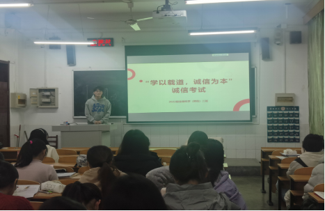 本次活动特别强调诚信教育的重要性,将“学以载道,诚信为本”的理念贯穿于活动的整个过程,并通过多种途径予以落实。首先,2022级、2023级、2024级的各班级均组织了以诚信考试为主题的班会活动。通过播放教育视频、开展案例分析等方法,学生们深入理解了诚信考试的重要性。学生们积极参与讨论,分享了自己对诚信考试的理解,并探讨了考试作弊现象出现的原因。此外,活动还包含了签署承诺书的环节,同学们在诚信考试承诺书上郑重签名,以示对诚信考试倡议活动的支持与承诺。最终,在同学们的积极参与和配合下,本次活动得以圆满结束。