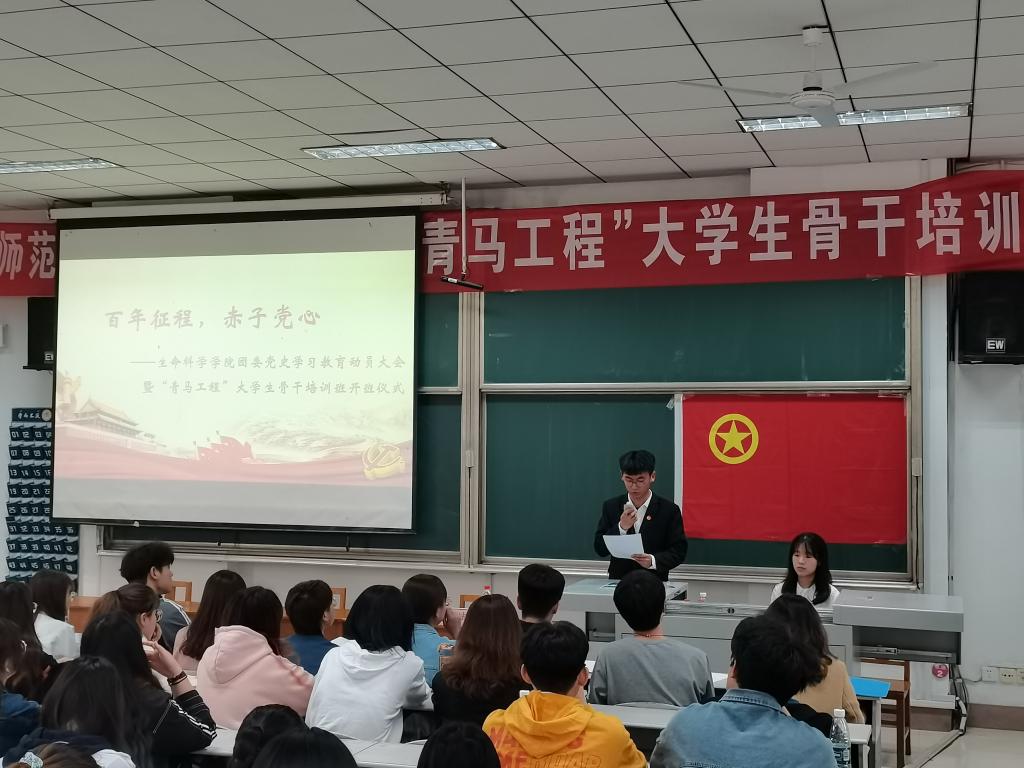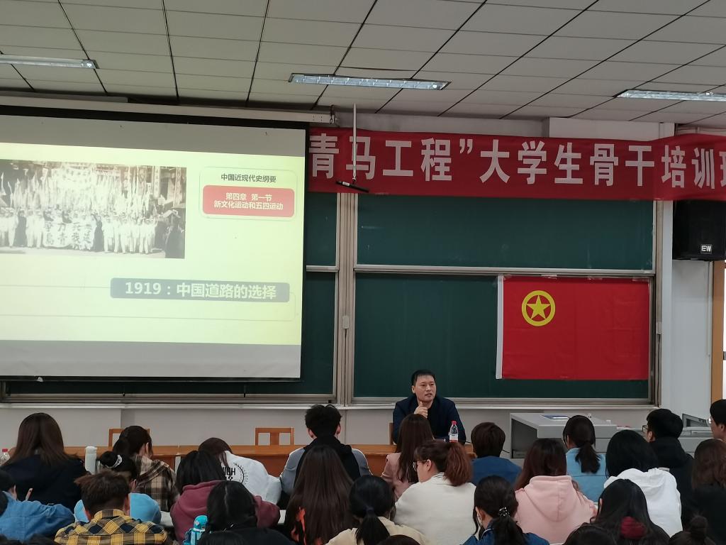 团委在综合楼206教室举行了党史学习教育动员大会暨“青马工程”大学生骨干培训班开班仪式。省青年讲师团成员、校团委兼职副书记、马克思主义炸金花
