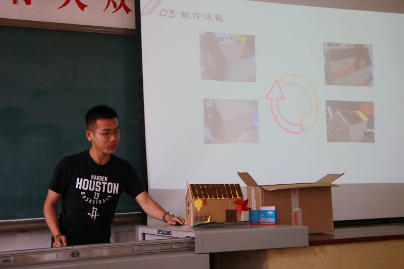 首先,参赛选手于6月13日中午之前在到梦空间完成报名,并于10日到15日进行了为期一周的作品制作。6月16日上午9点,参赛选手于生物楼313教室对自己的作品以ppt等形式进行了讲解,阐述了作品的创作源泉、制作过程等,每个人都发挥了想象,将在别人眼中没有用的东西,通过自己丰富的想象和灵巧的双手变成了一件宝贝,废弃光碟摇身一变竟成花篮;炎热的夏天里雪糕棍、饮料瓶变得很常见,在同学们的巧手下,饮料瓶盖变成了风车;快递盒雪糕棍变成了收纳箱……最终由评委们根据作品完成情况和选手的讲解进行打分,比赛也在和谐的气氛中圆满结束。