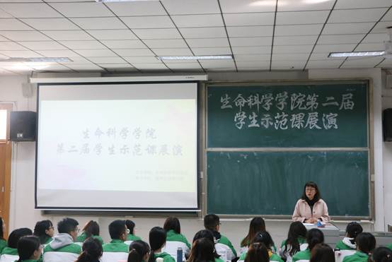 随后,授课展演环节正式开始,获奖学子依次上台展示授课技能。张悦同学用精彩的视频引出了本次课堂的主题,伴随着响亮有力的话语在讲台上穿梭,多次用道具展示鸟的生殖和发育的教学内容,使课堂充满趣味性;李贵珍同学先给每个小组发一个鸡蛋,让小组自己动手找胚盘等结构,使课堂更加生动有趣,让同学们在实践中找到知识。王欣同学以生活实例进行课堂导入,对“交警为什么不让红绿色盲开车”引发思考,继而不断引导出本节课的学习重点,展现了巧妙创新地课堂构思与设计。张祥沛、郭永峰、燕艳对五位学子进行一一点评,展演活动循序渐进、井然有序。最后,在同学们的热烈掌声中,授课展演活动到此圆满结束。