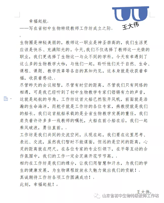 成立山东省初中生物学特级教师工作坊,必将以培养更多具有现代教育观念和教育教学工作能力的骨干教师为己任,为地方基础教育改革和发展贡献力量。